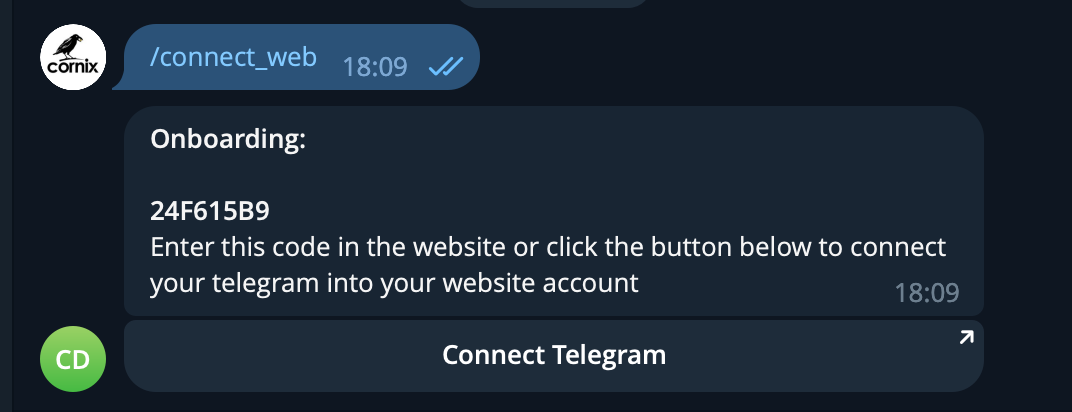 3) Press “Connect Telegram” or send “/connect_web” to your Telegram bot, and you will receive your UUID. Copy the code and paste it back into the text box.