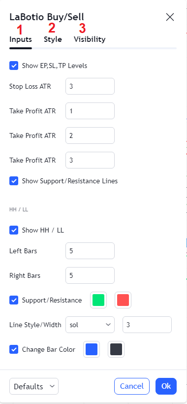 LaBute Indicator Settings - Buy and Sell Signals