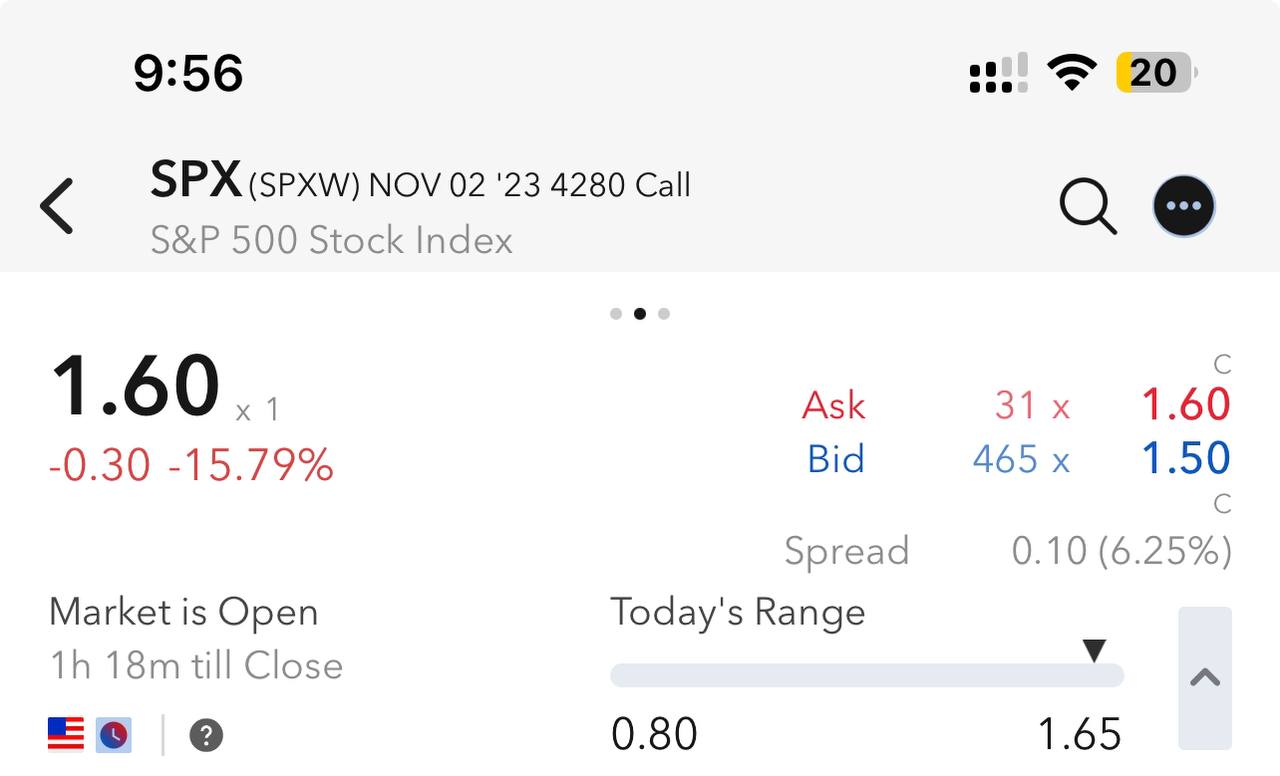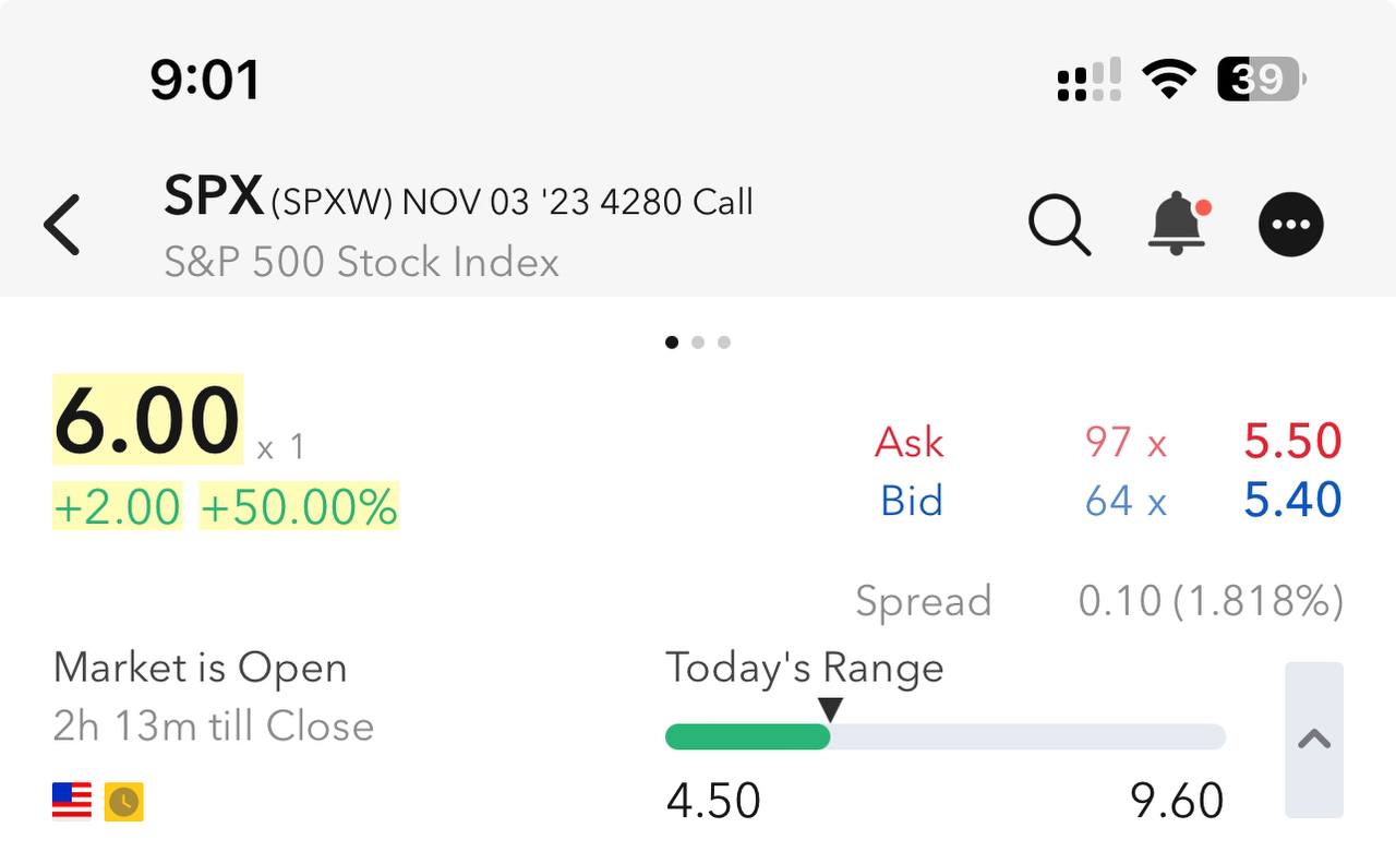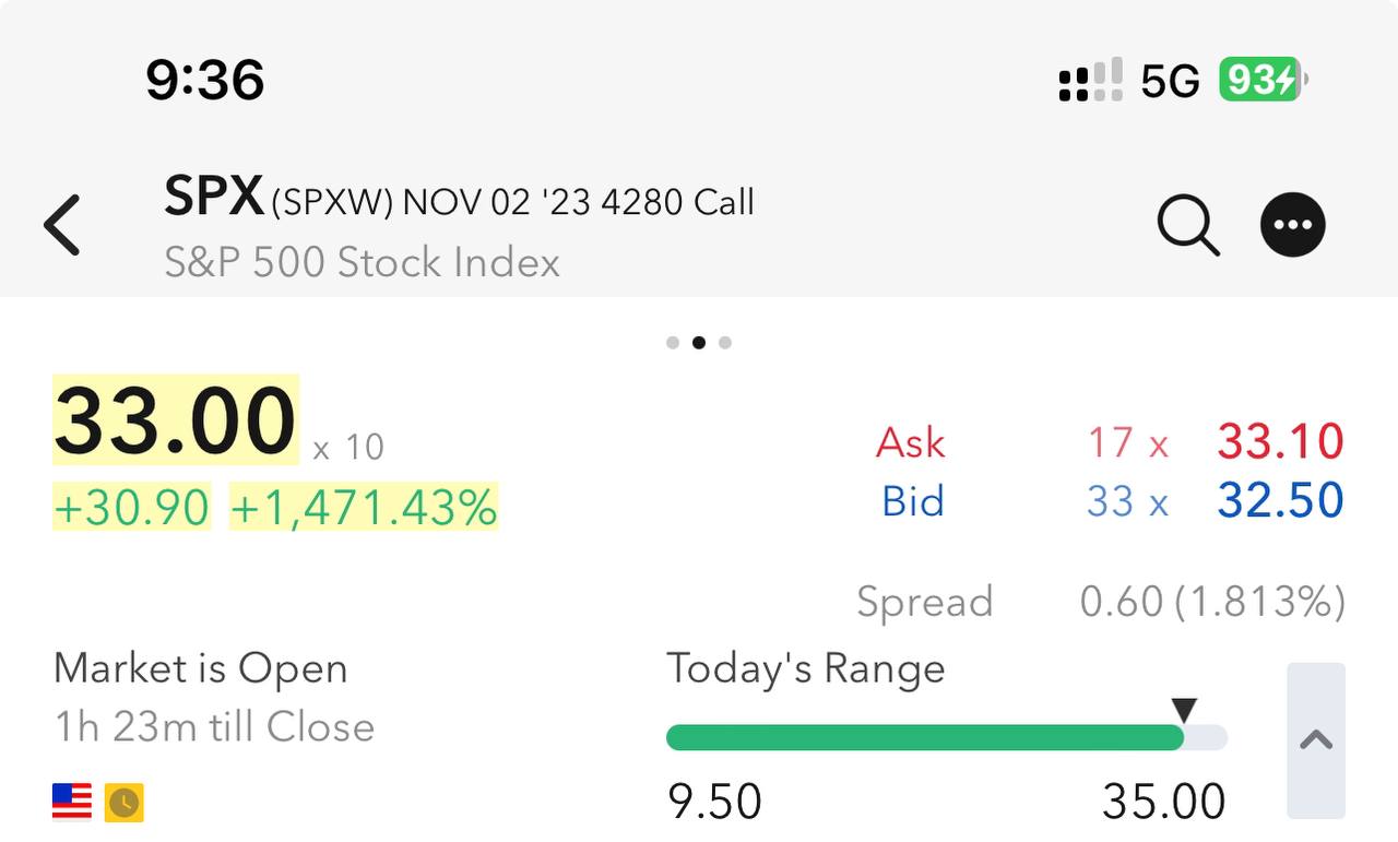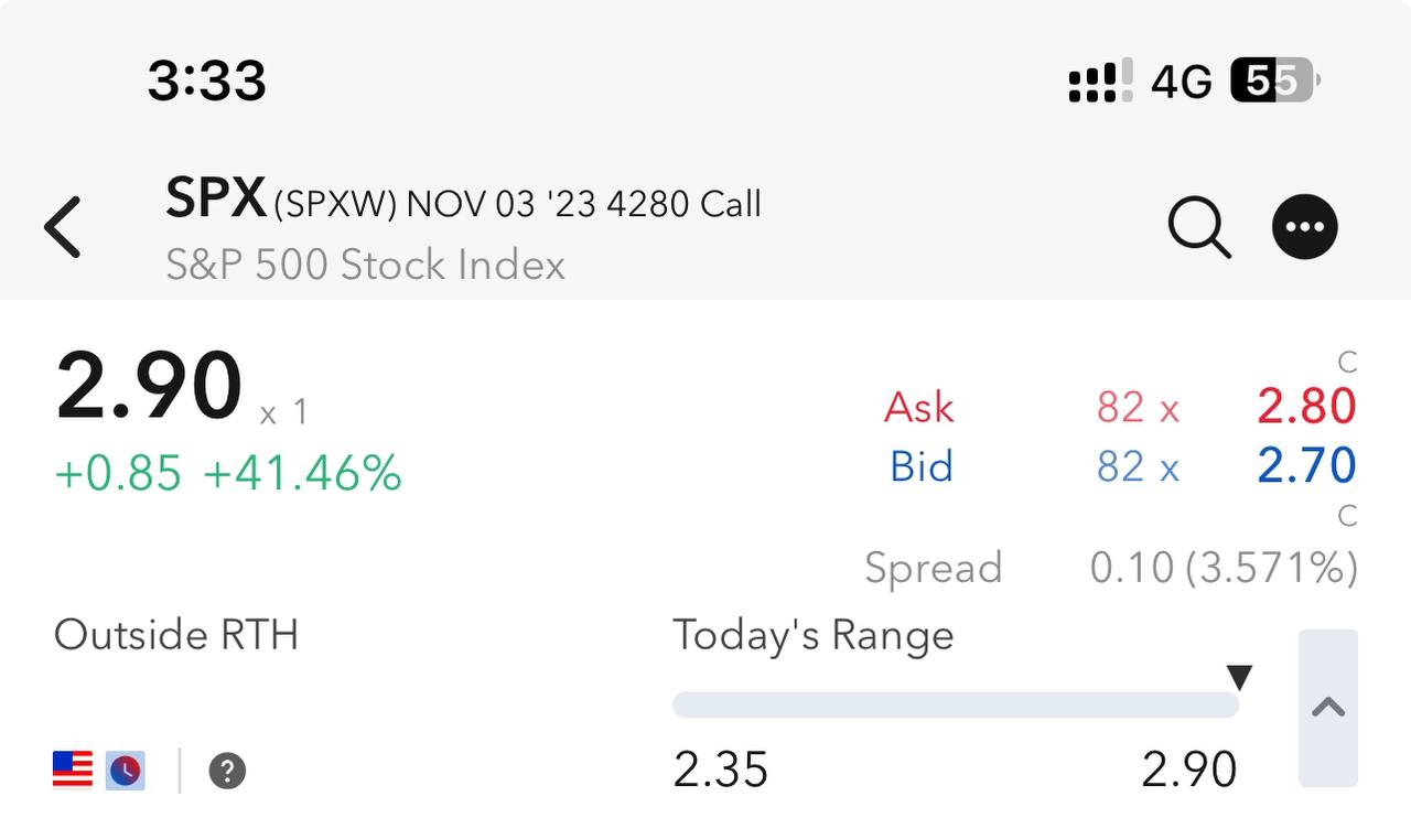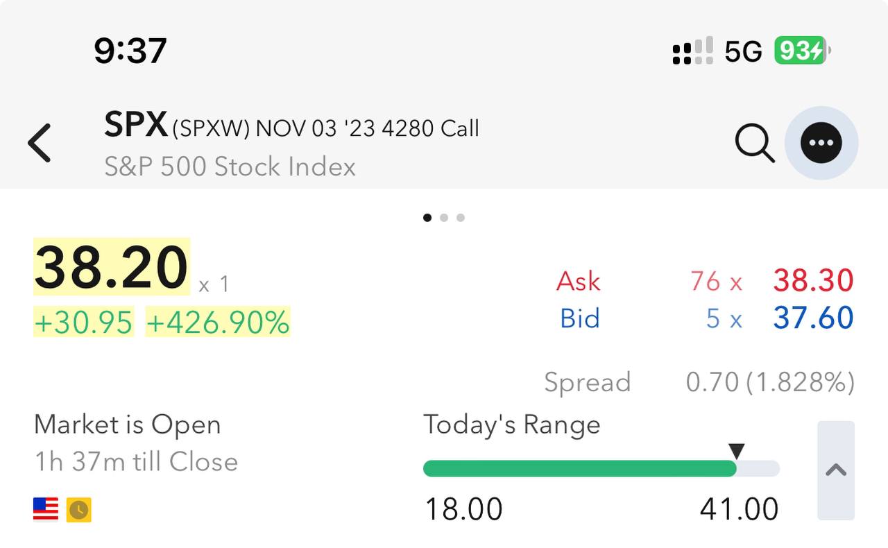 On the same day, Thursday, November 2, 2023, when our Cole 4280 Strike contract will expire, November 2, 2023, we monitored it continuously and constantly lifted the stop, and this is one of the risk management methods that every trader must adhere to.