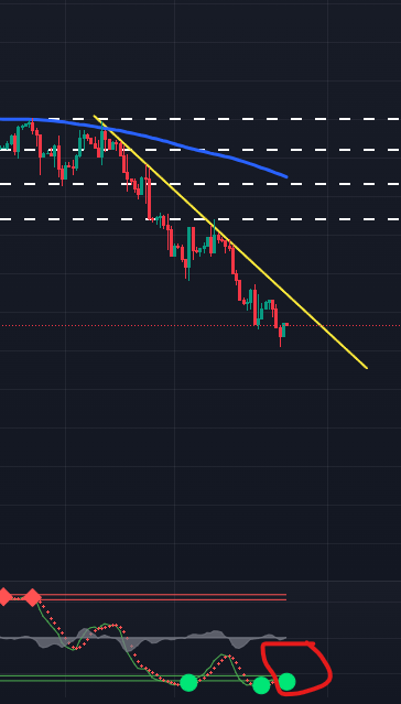 It appears to you that the trend is down in general, but the Labot indicators for peaks and troughs at the bottom showed a green dot , which indicates oversold saturation, which gives a hint that there is a rebound, even if the 4-hour candle is green! We have drawn ( the trend line in yellow )