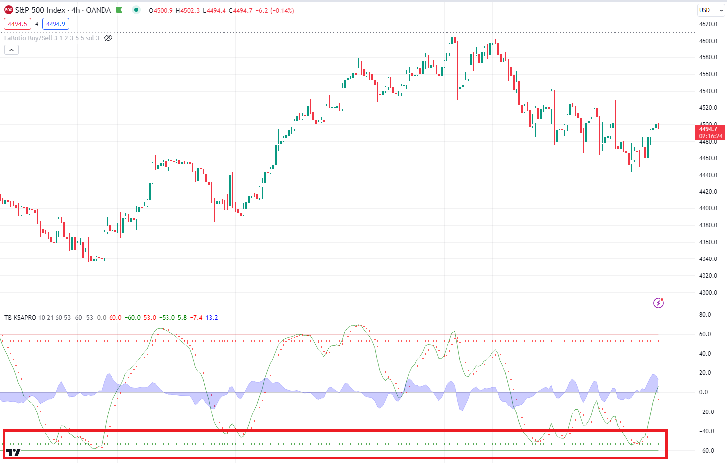 As you can see in the following image (the red box at the bottom), it is considered a bottom area, in other words, the stock or currency has reached saturation and it is likely that there will be a rise in the future.